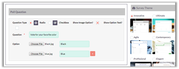 Radio Button and Check Box question type can have images as their options.